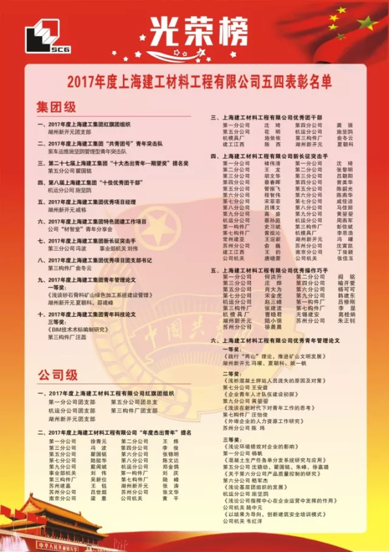材料公司“五四”表彰大會暨青年突擊隊授旗儀式于5月11日下午在上海召開,會上表彰了一批在2017年成績突出的先進集體及個人。新開元共獲得了三項集團榮譽和六項材料公司榮譽(集團紅旗團組織、集團優(yōu)秀項目經(jīng)理、集團青年管理論文一等獎、材料公司紅旗團組織、材料公司年度杰出青年提名、材料公司優(yōu)秀團干部、材料公司新長征突擊手、材料公司優(yōu)秀操作巧手、材料公司優(yōu)秀青年管理論文)。